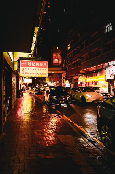 潮湿路面把霓虹全部反射了回来。